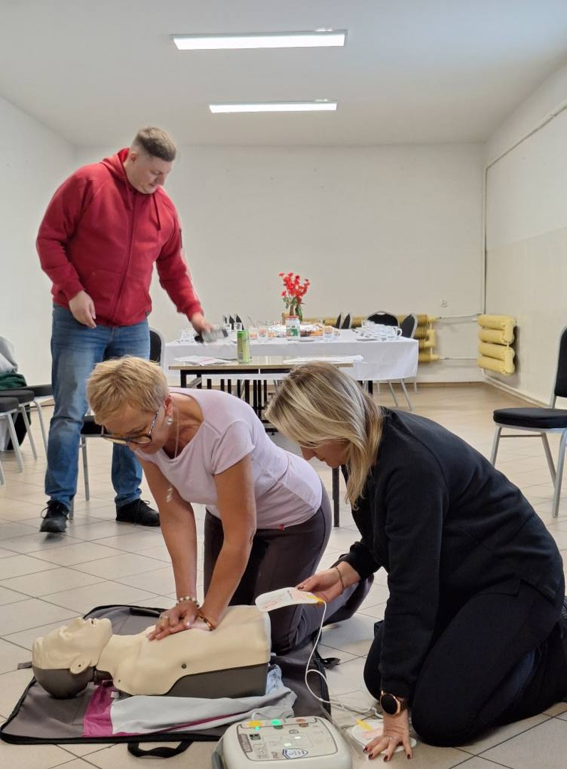 W sobotę, 11 października, w sali wiejskiej w Henrykowie odbyło się praktyczne szkolenie z zakresu pierwszej pomocy i obsługi defibrylatora AED. Zajęcia poprowadzili ratownicy z zespołu Medycyny Ratunkowej Arteria, którzy w przystępny sposób pokazali, jak korzystać z urządzenia ratującego życie oraz jak reagować w sytuacjach nagłego zagrożenia zdrowia lub życia. 🩺