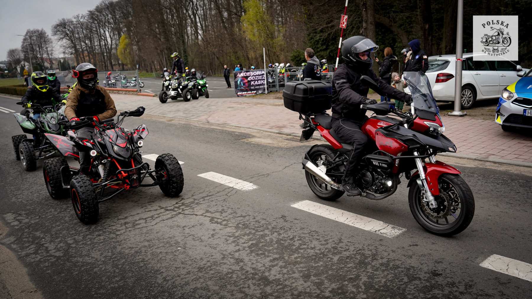 Punktualnie o 12:00 uczestnicy wyruszyli na paradę po okolicy. Kolumna motocykli robiła ogromne wrażenie – ryk silników i różnorodność maszyn przyciągały uwagę zarówno pasjonatów, jak i przypadkowych obserwatorów.