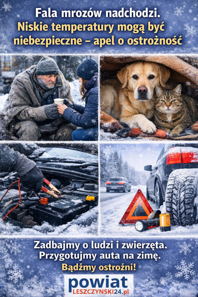 Utrzymujące się od kilku dni silne mrozy, z temperaturami spadającymi kilkanaście stopni poniżej zera, niosą ze sobą realne zagrożenie dla zdrowia i życia. W szczególności niebezpieczeństwo dotyczy osób w kryzysie bezdomności, osób nietrzeźwych, seniorów oraz zwierząt pozostających bez odpowiedniej opieki.