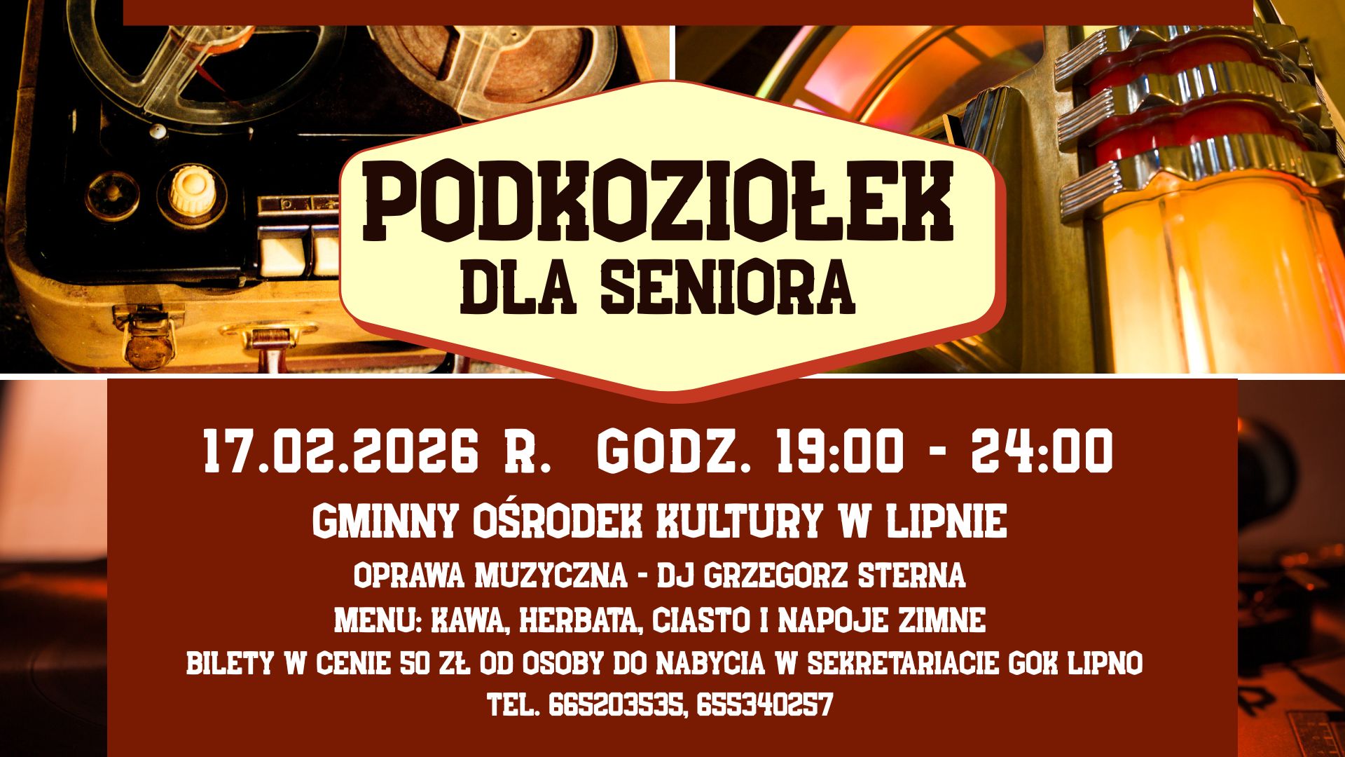 Gminny Ośrodek Kultury w Lipnie zaprasza seniorów – i nie tylko – na wyjątkowe wydarzenie kończące karnawał. Już 17 lutego 2026 roku odbędzie się „Podkoziołek dla Seniora”, czyli wieczór pełen muzyki, tańca i wspólnej zabawy w klimacie dawnych lat.