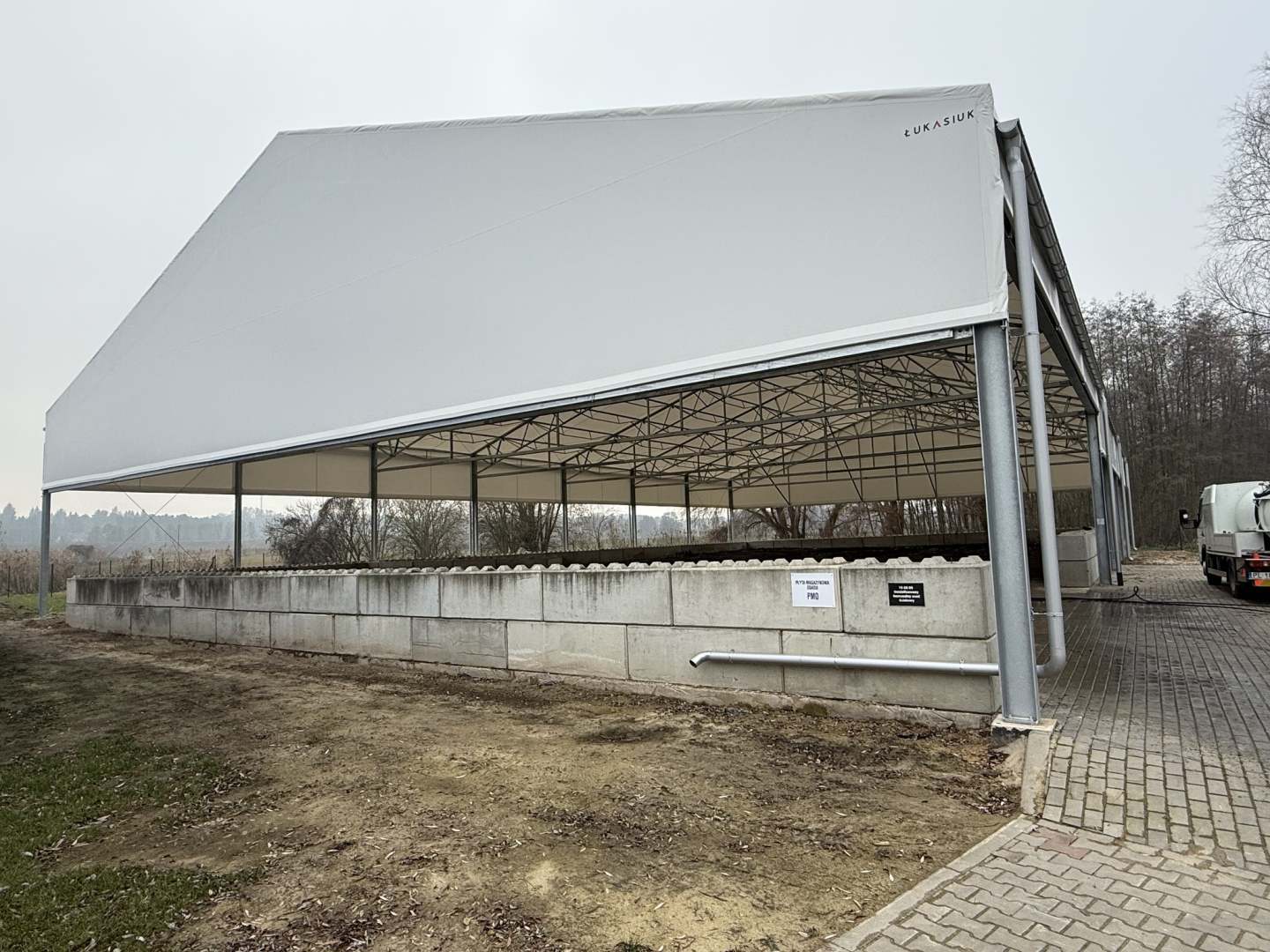 zakończono budowę zadaszenia płyty magazynowej na osad ściekowy,