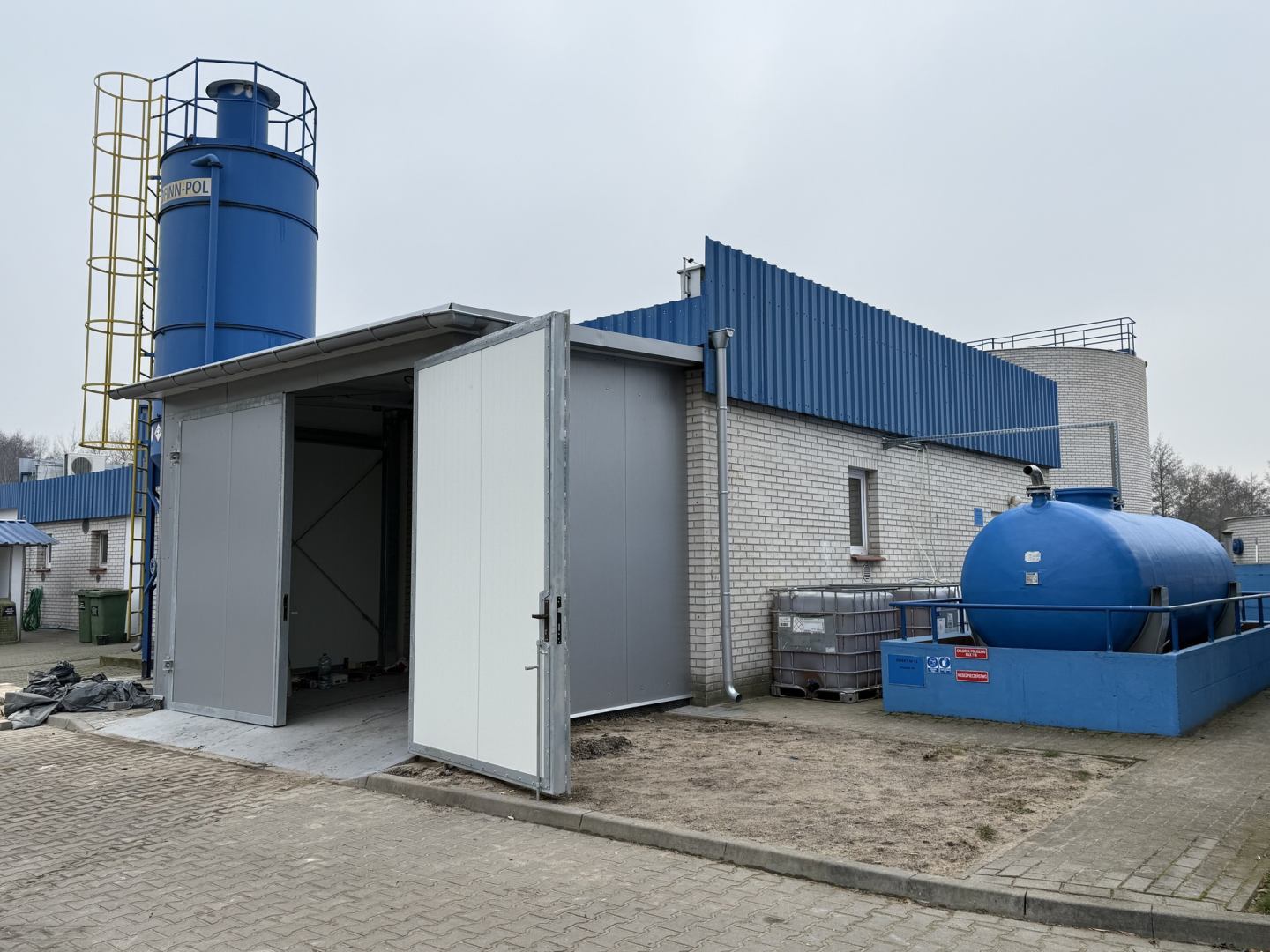 zaawansowane są prace przy rozbudowie pomieszczeń stacji odwadniania osadu,
