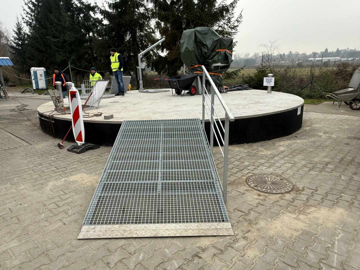 trwa przebudowa zbiornika buforowego, który zmieni swoją funkcję i będzie pełnił rolę głównej pompowni ścieków z mechaniczną kratą – pierwszym elementem bloku mechanicznego oczyszczania.