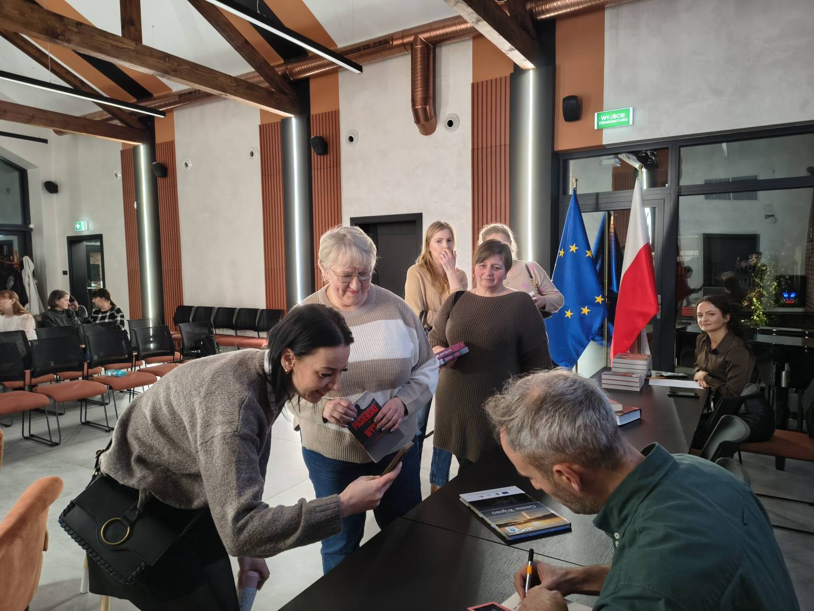 Po oficjalnej części spotkania nie zabrakło czasu na autografy oraz indywidualne rozmowy w kuluarach. Warto podkreślić, że Jędrzej Pasierski jest laureatem Nagroda Wielkiego Kalibru – najważniejszego wyróżnienia dla autorów kryminałów w Polsce – które otrzymał za powieść Roztopy.