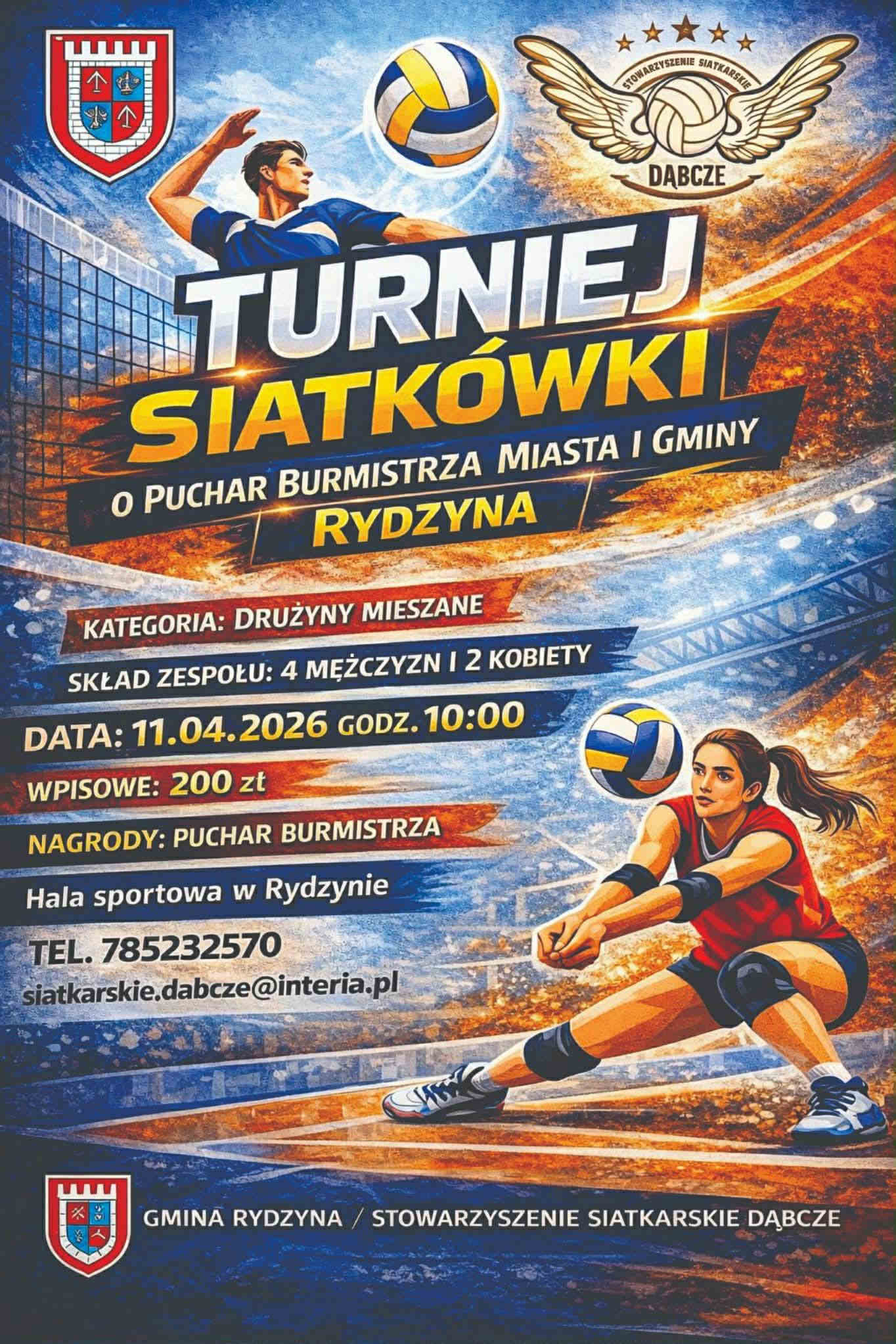 W sobotę 11 kwietnia 2026 roku Rydzyna stanie się areną sportowych emocji. W hali sportowej odbędzie się Turniej Siatkówki o Puchar Burmistrza Miasta i Gminy Rydzyna, organizowany z myślą o amatorach siatkówki i lokalnych drużynach.