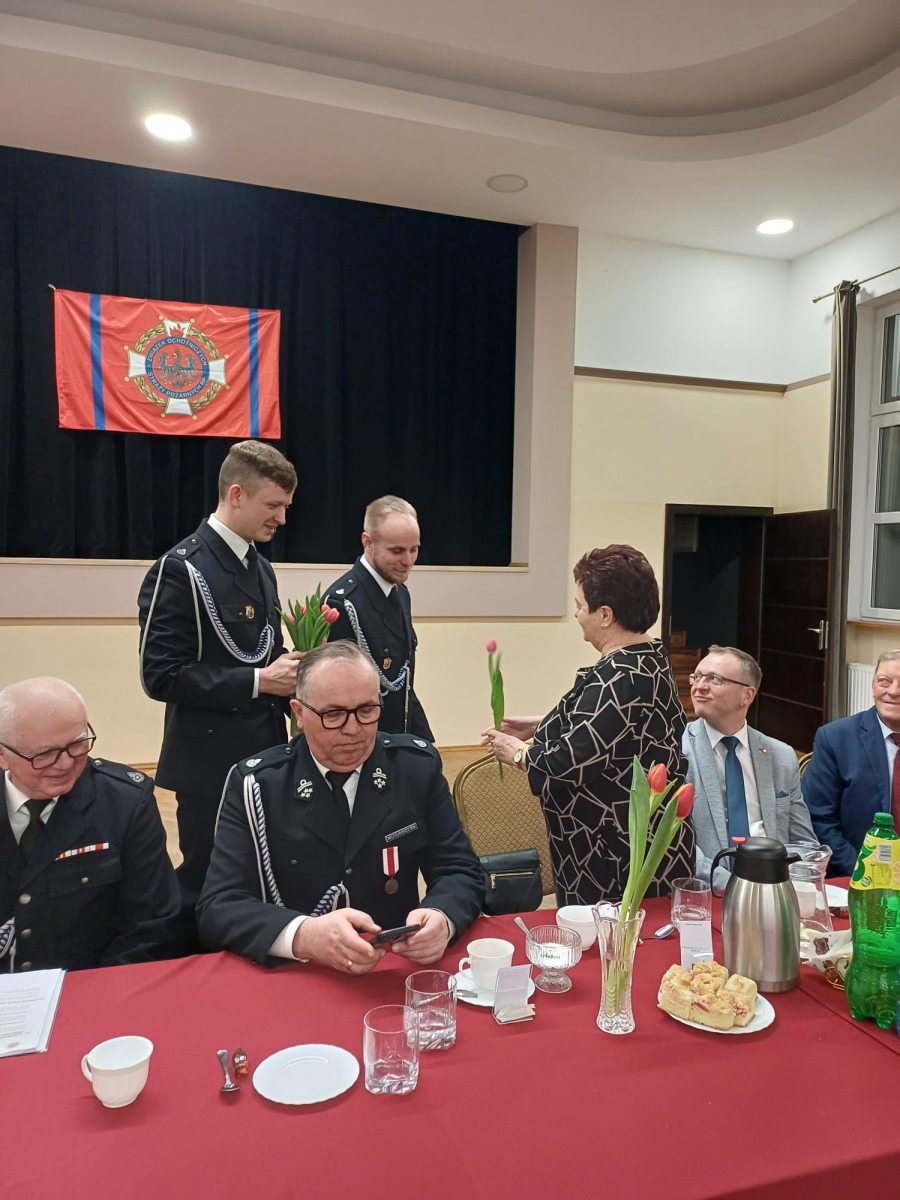 Na zakończenie strażacy wręczyli wszystkim obecnym paniom kwiaty 🌷🌹 z okazji zbliżającego się Dnia Kobiet, składając serdeczne życzenia.